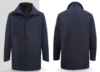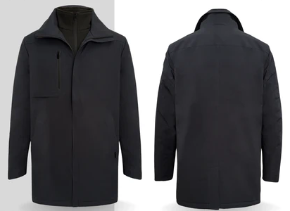 A modern design with clean lines, this "trench" style is designed for professionals seeking comfort and elegance in moderate temperatures. The detachable bib offers versatility, adaptable to climatic fluctuations.